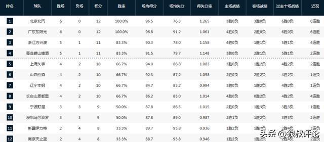 CBA最新排名:京粤6连胜争第1 新疆魔鬼主场2连败 仅1队0胜6负