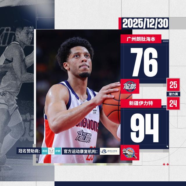 2025年12月30日 新疆轻取广州 阿不都沙拉木18+10+7 齐麟15分 徐昕10分