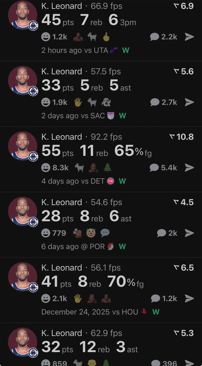 伦纳德梦回巅峰,连续多场比赛砍下巨星级数据,快船喜迎六连胜