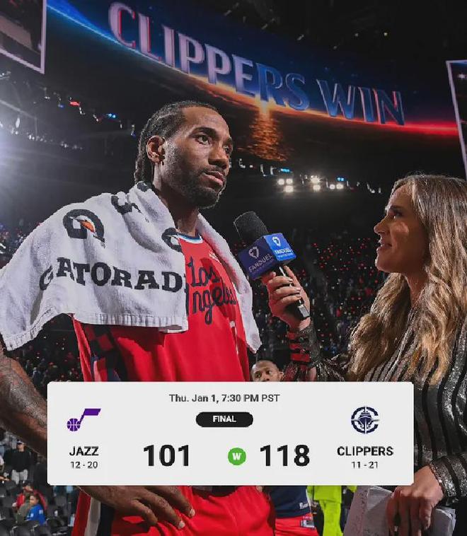 2026年01月02日 快船击败残阵爵士迎来6连胜!小卡45+7&末节20分 哈登20+7