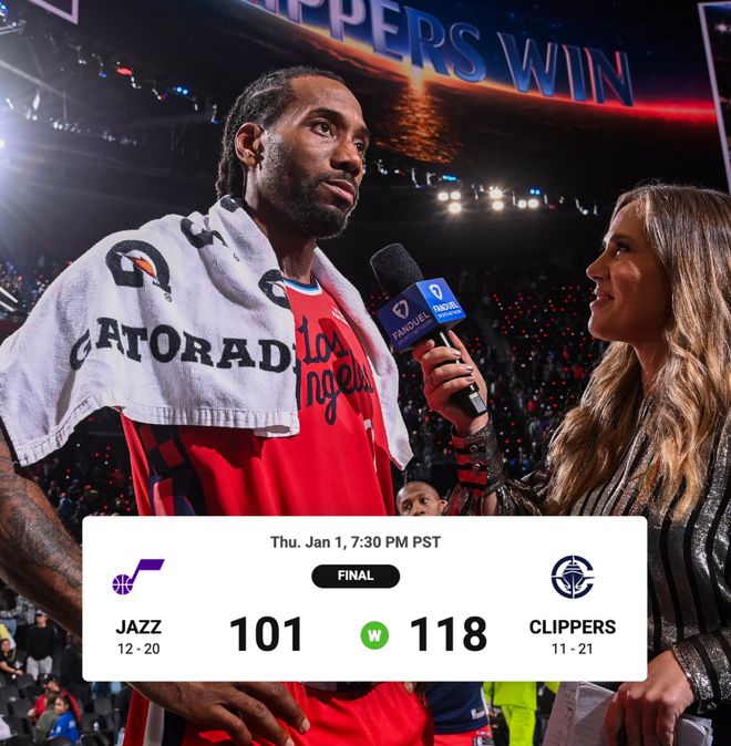2026年01月02日 快船击败残阵爵士迎来6连胜!小卡45+7&末节20分 哈登20+7