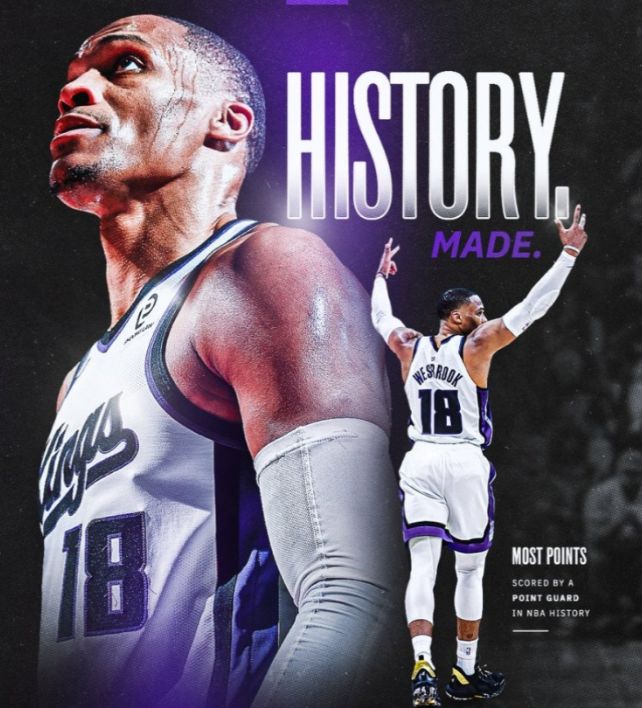 虽然输掉了比赛,不过威少还是迎来了一个好消息,他登顶79年NBA,又缔造一项新纪录。在拿到这17分之后,威少的职业生涯总得分就来到了26711分,成功超越了大O罗伯特森的26710分,成为了NBA历史控卫得分王。