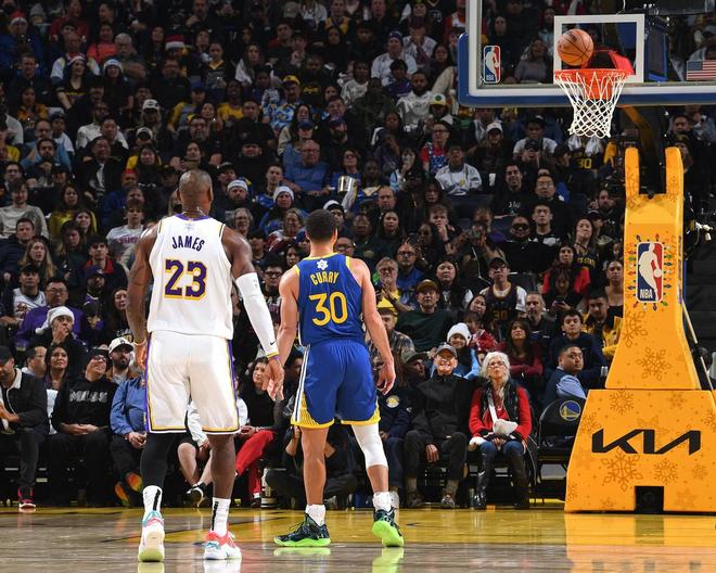 在2024年圣诞大战中库里与老对手詹姆斯同台竞技,虽然库里在最后时刻连续命中两记高难度三分,但球队依然惜败,库里全场24投14中,三分15中8,,罚球2中2,空砍38分1篮板6助攻4失误。38分也是库里生涯最高分。