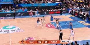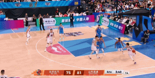 5分12秒,陈林坚接阿杰助攻飚进三分,山东5分钟16-5,领先来到81-71!