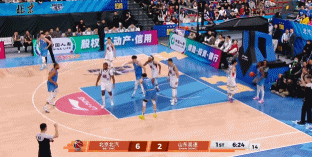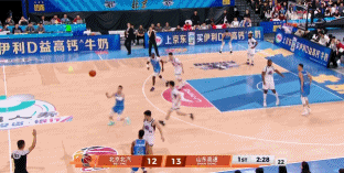 没有赵睿,北京的阵地战打不出深度,少了一个能突进去造杀伤的点,新援贝利首秀成绩不理想,半场只打了2分钟送出一记失误后就被换下。北京不想输就必须得提速,下半场山东继续主抓转换,珀赛尔开局先造2罚、谢智杰打进反击一条龙上篮、克里斯强怼周琦+罚球再得4分,4分钟山东拿到8分。