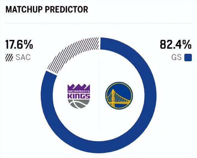 赛前,美媒ESPN对本场比赛进行了胜率预测,勇士队胜率高达82.4%,一骑绝尘,国王队胜率则仅有17.6% ,还是不被外界看好。