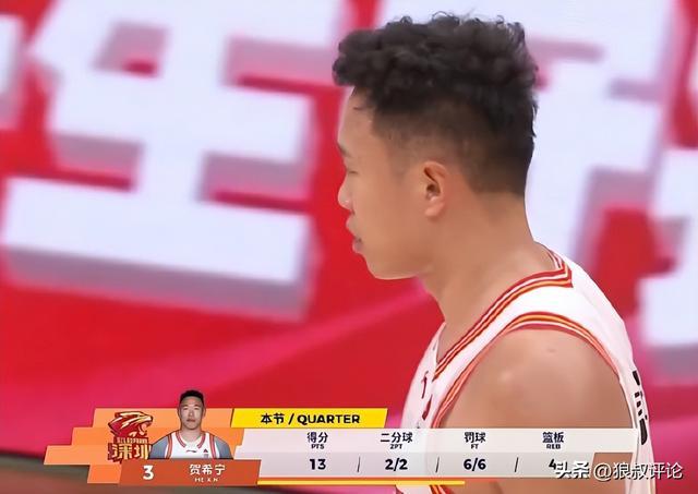 本场比赛,贺希宁第四节接管比赛拿下13分5篮板,得到新赛季新高的32分9篮板2助攻引发外界的热议。
