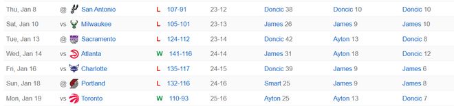 2026年01月19日 艾顿10中10砍25分13板 湖人击退猛龙 詹姆斯24+7 东契奇25+7