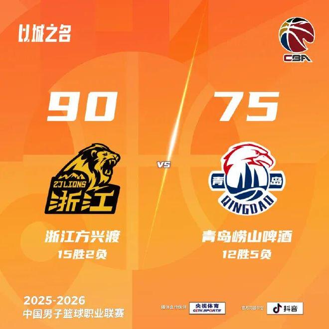 阵容不齐,负于广厦!青岛崂山啤酒75-90不敌浙江方兴渡