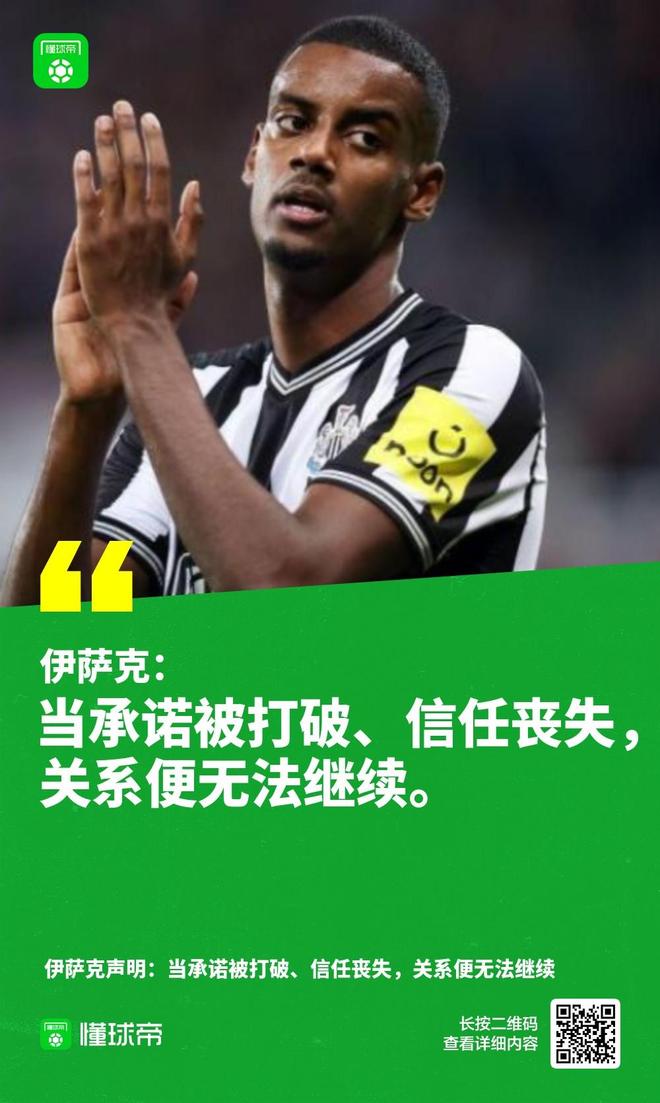 伊萨克、纽卡、利物浦共同缔造了2025夏窗战线最长的转会肥皂剧。一心想加盟利物浦的伊萨克不惜采取罢训的手段要求纽卡放人,并在社交媒体发表声明谴责纽卡不守信用。纽卡随后发文反击,表示球员和俱乐部之间没有达成任何承诺。多名纽卡球员也公开站队,对伊萨克的言论表达不满。伊萨克的声明不仅引爆了网络舆论,更进一步疏离了他和纽卡的关系。