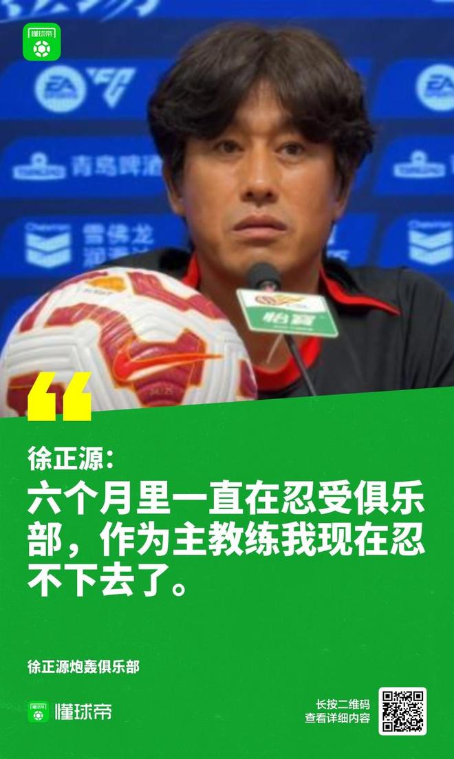 今年7月17日,成都蓉城对阵天津津门虎的赛前发布会,时任成都蓉城主帅徐正源选择公开表达自己对俱乐部的不满。