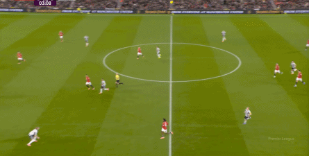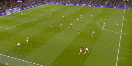实际上,如果你认为上半场的曼联还是343,只是在结构和站位上稍微有些不符常规,那么这个换人其实会更好理解,因为在约罗换下卡塞米罗之后,曼联正式变阵为442: