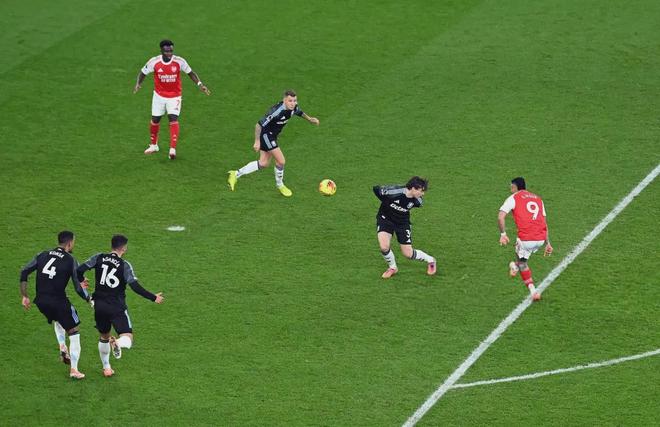 随后的比赛成为了阿森纳的进攻表演。第52分钟,厄德高精妙直塞,苏维门迪捅射破门;第69分钟,特罗萨德远射得手;第78分钟,刚刚替补登场的热苏斯第一次触球便完成进球。