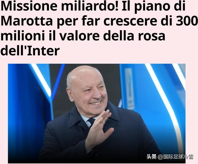 辞旧迎新之际,《米兰体育报》以“10亿欧元的使命”为题,指出:橡树资本给马洛塔的任务,是让国际米兰的价值——也就是球员的总价值提升3亿欧元,达到十位数欧元。