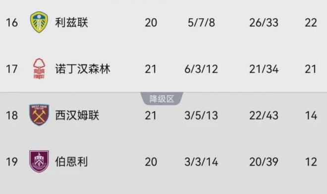 这场失利并非偶然,而是西汉姆近期低迷状态的集中爆发。据Squawka统计,此役过后,西汉姆遭遇英超连续10场不胜,战绩为4平6负,这是球队自2007年3月以来的首次,创下了长达19年的耻辱纪录。更糟糕的是,近6轮英超比赛,球队仅拿到1分,是同期英超所有球队中拿分最少的,如此糟糕的抢分效率,让他们与保级区的差距逐渐拉大到7分。