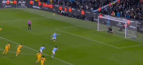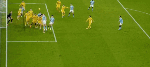 伤停补时阶段,多库左路直传,阿克下底传中,赖因德斯后点推射,范黑克门线前解围,曼城1球领先进入更衣室。