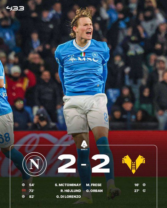 北京时间1月8日01:30,意甲联赛第19轮,那不勒斯主场迎战维罗纳。上半场,弗雷塞脚后跟破门!布翁乔尔诺送点,奥尔班点射破门,但因不当庆祝吃到黄牌!下半场,麦克托米奈头球扳回一城;霍伊伦混战中抽射破门,但被吹手球无效!麦克托米奈破门因拉赫马尼越位无效;马里亚努奇助攻迪洛伦佐扳平比分!最终,那不勒斯2-2战平维罗纳,各项赛事4连胜终结。