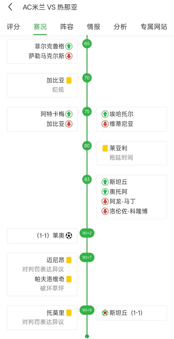 就在斯坦丘主罚这个点球之前,米兰后卫帕夫洛维奇还被主裁判马里亚尼出示了黄牌,最初的原因则被记录为对判罚表达异议。