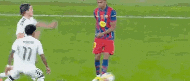 上半场第22分钟,亚马尔一次看似很平常的拿球传球,被上抢的卡雷拉斯凶狠铲倒脚踝,亚马尔痛苦倒地。但是裁判并没有任何的表示,只是示意比赛继续。但是通过慢镜头回放,这个铲抢的动作非常的粗野,给一张黄牌警告也在情理之中。也许是当时比赛的平衡没有被打破,主裁判不想破坏均势,选择保守。