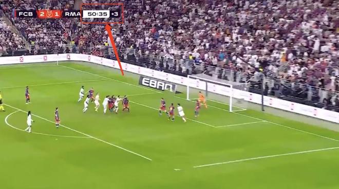 可是当这个时间点到来之后,主裁判并没有结束,而是让比赛继续。比赛来到45+5分35秒时,也就是补时的第6分钟,贡萨洛加西亚打进扳平的进球。