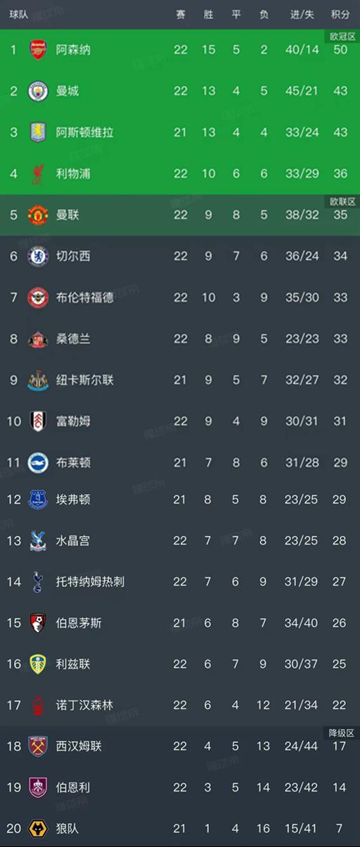 英超第22轮结束了7场比赛,最新积分榜如下!-JRS直播网