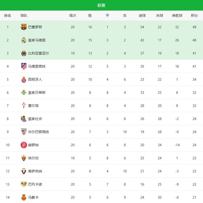 随着巴萨1-2+维拉0-1!西甲、英超最新积分榜出炉!非洲杯大结局