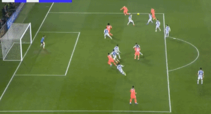比赛一开场,疯狂的节奏就来袭!仅仅25秒,贡萨洛-格德斯右路内切传中,奥亚萨瓦尔头球破门,虽然因越位被吹,但也把蓝红军团吓出一身冷汗!随后堪称“噩梦级”的上半场正式登场!