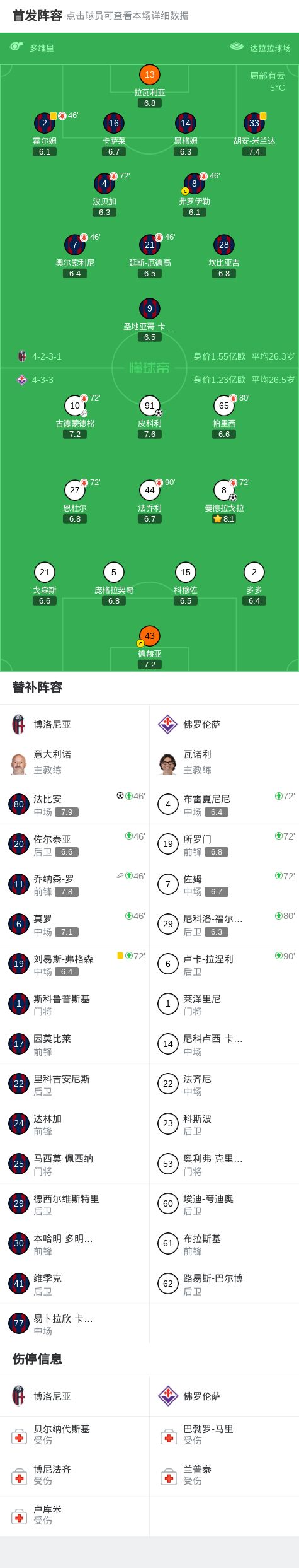 博洛尼亚1-2佛罗伦萨,曼德拉戈拉建功,法比安进球难救主-JRS直播网