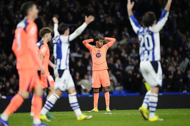 而在3球被吹后,巴萨第32分钟率先丢球,奥亚萨瓦尔凌空抽射破门,为皇家社会取得领先。